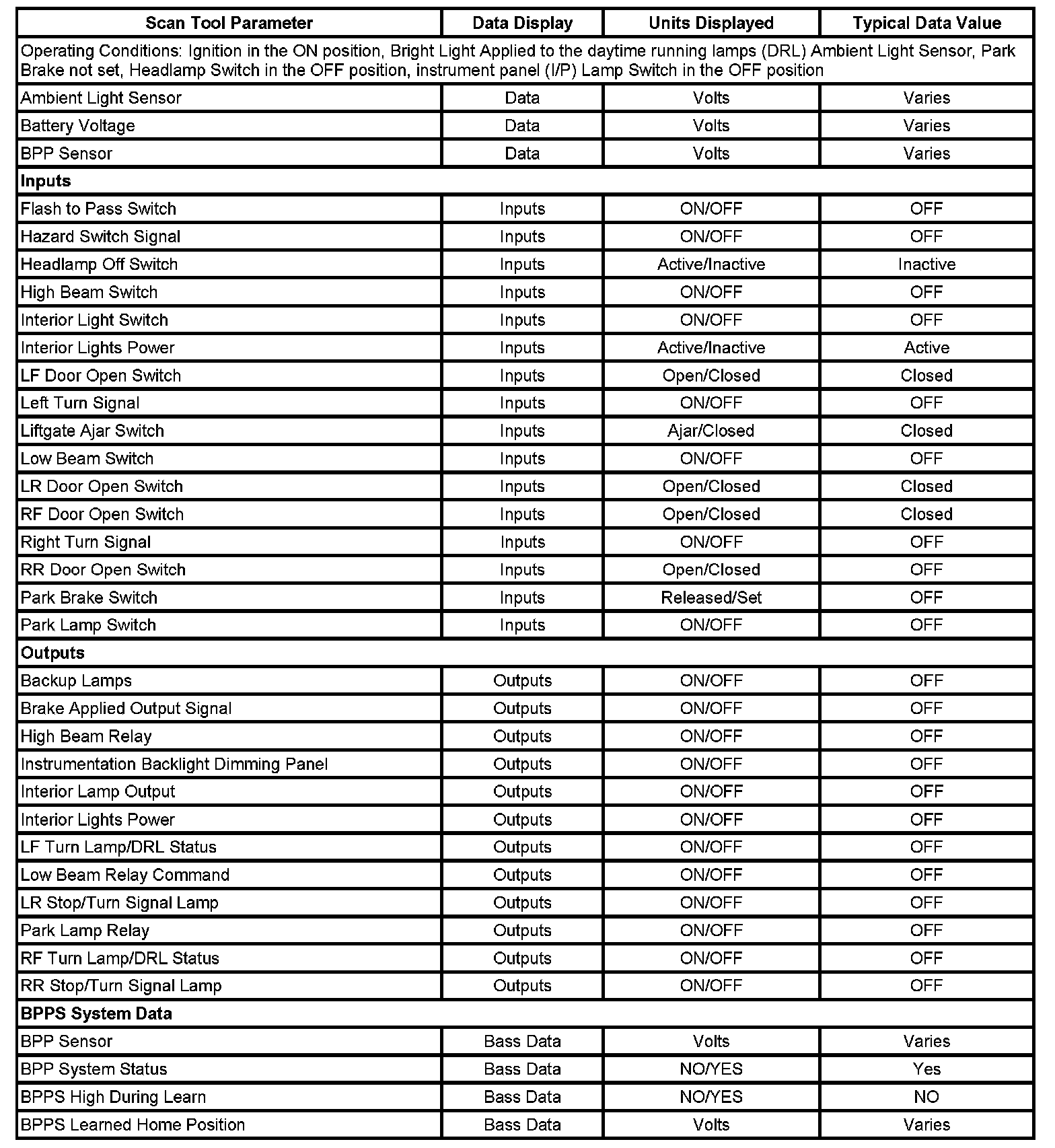 Scan Tool Data List
