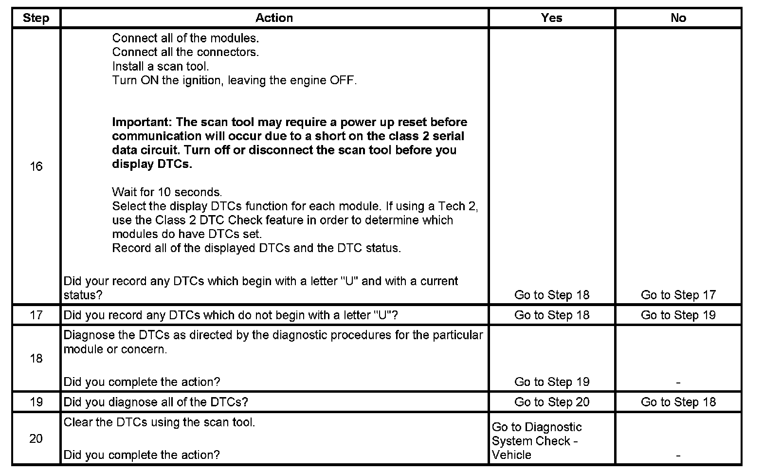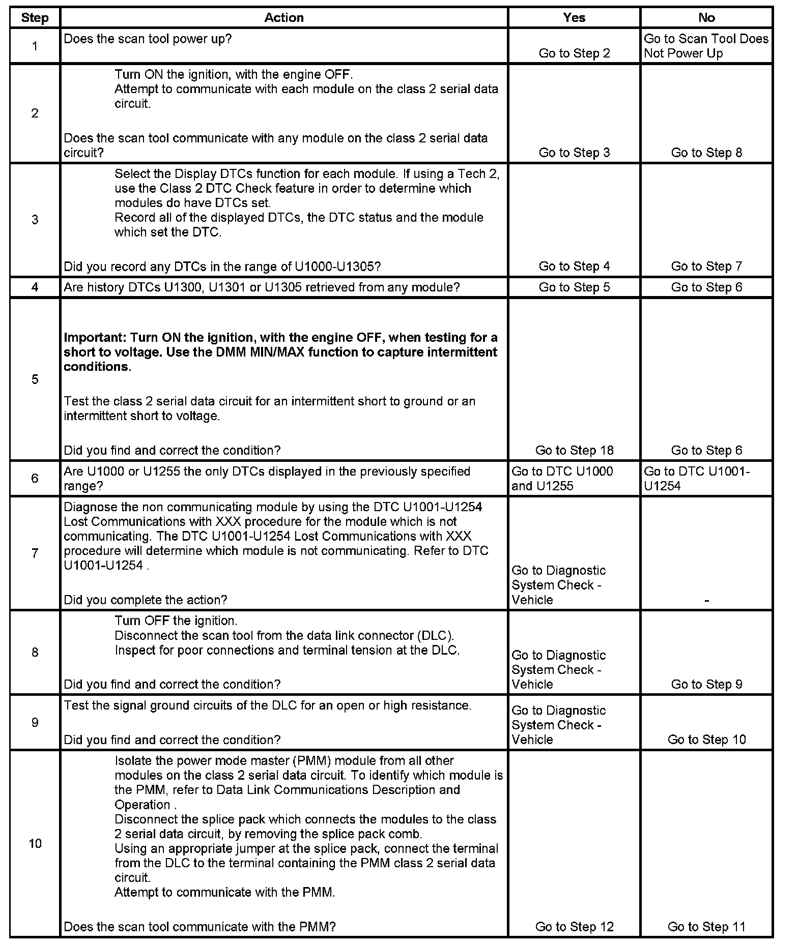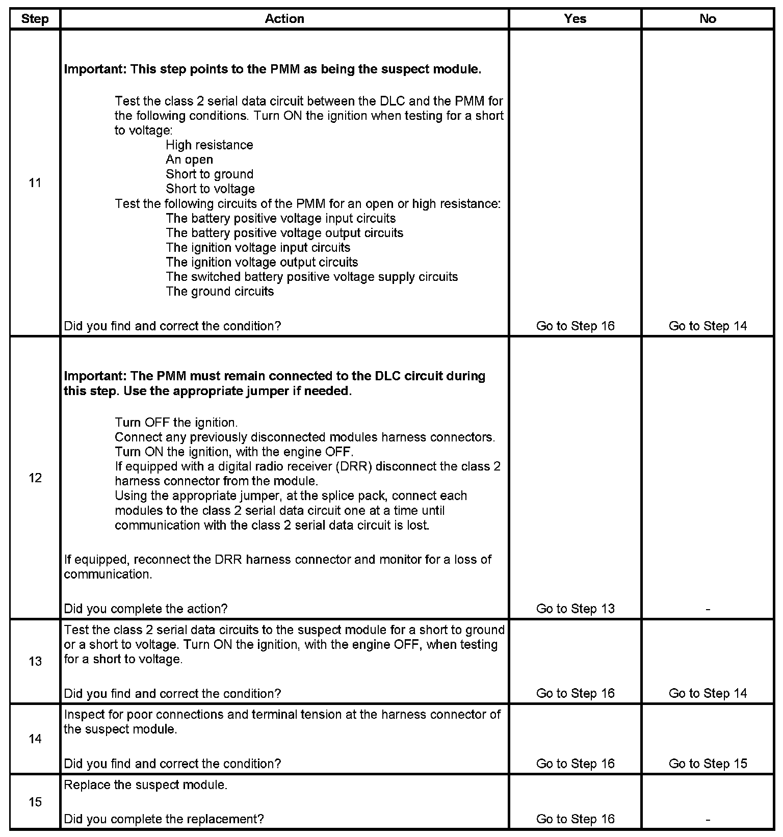 12. This step uses the loss of communications with a class 2 serial data circuit to locate the probable malfunction.