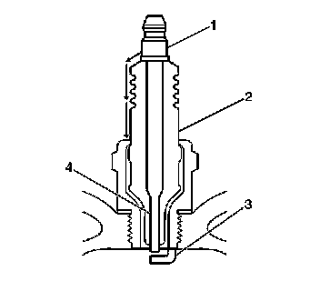 - Inspect for the correct spark plug torque. Insufficient torque can prevent correct spark plug operation. An over torqued spark plug, causes the insulator (2) to crack.