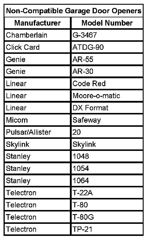 Important: Do not use the garage door opener (GDO) with any garage door opener that does not have the stop and reverse safety feature. This includes any garage door opener model manufactured before April 1, 1982.
