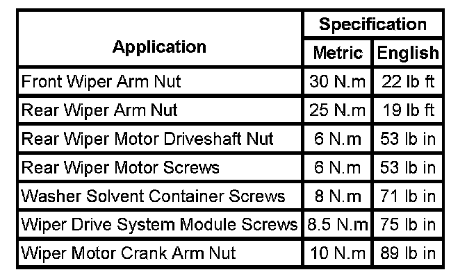 Wiper and Washer Systems: Specifications