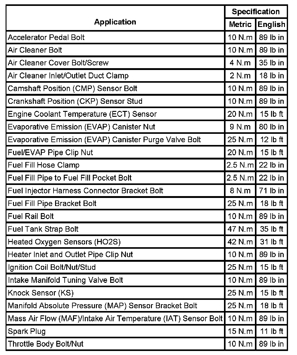 Fastener Tightening Specifications