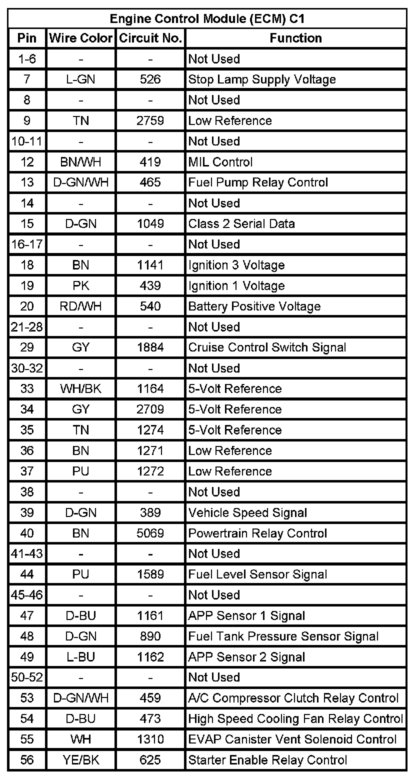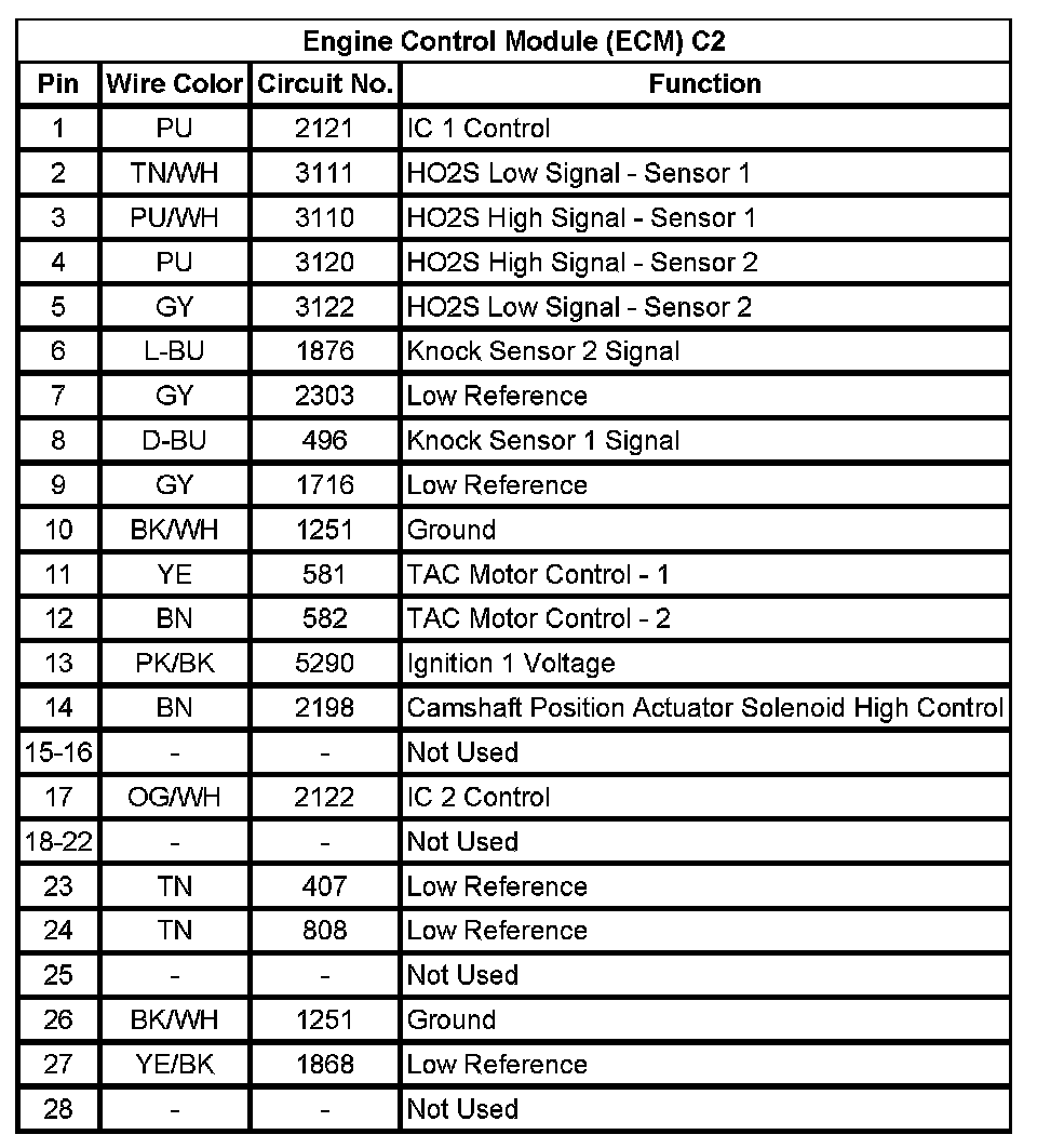 Engine Control Module (ECM) C2 (Pin 1 To 28):