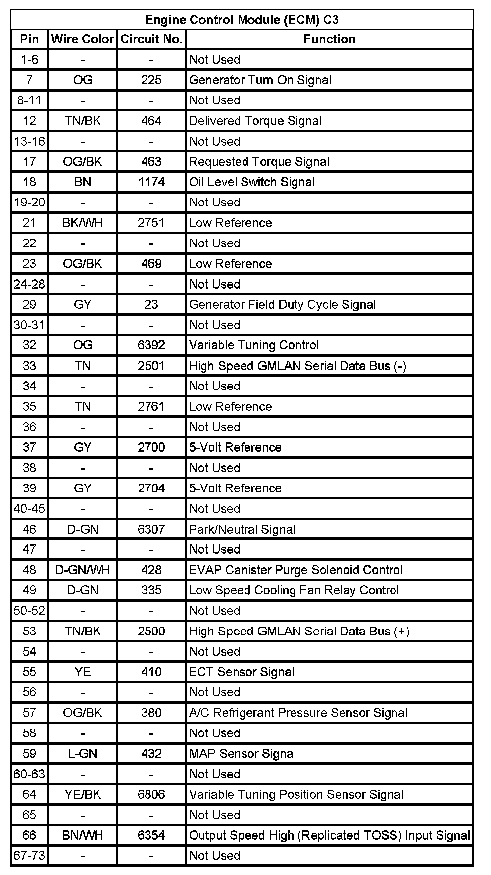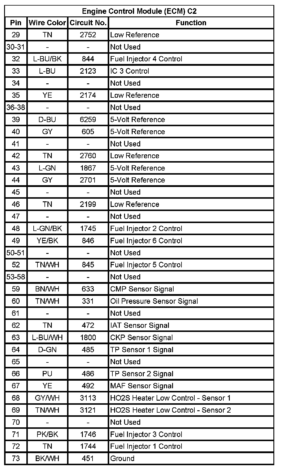 Engine Control Module (ECM) C2 (Pin 29 To 73):