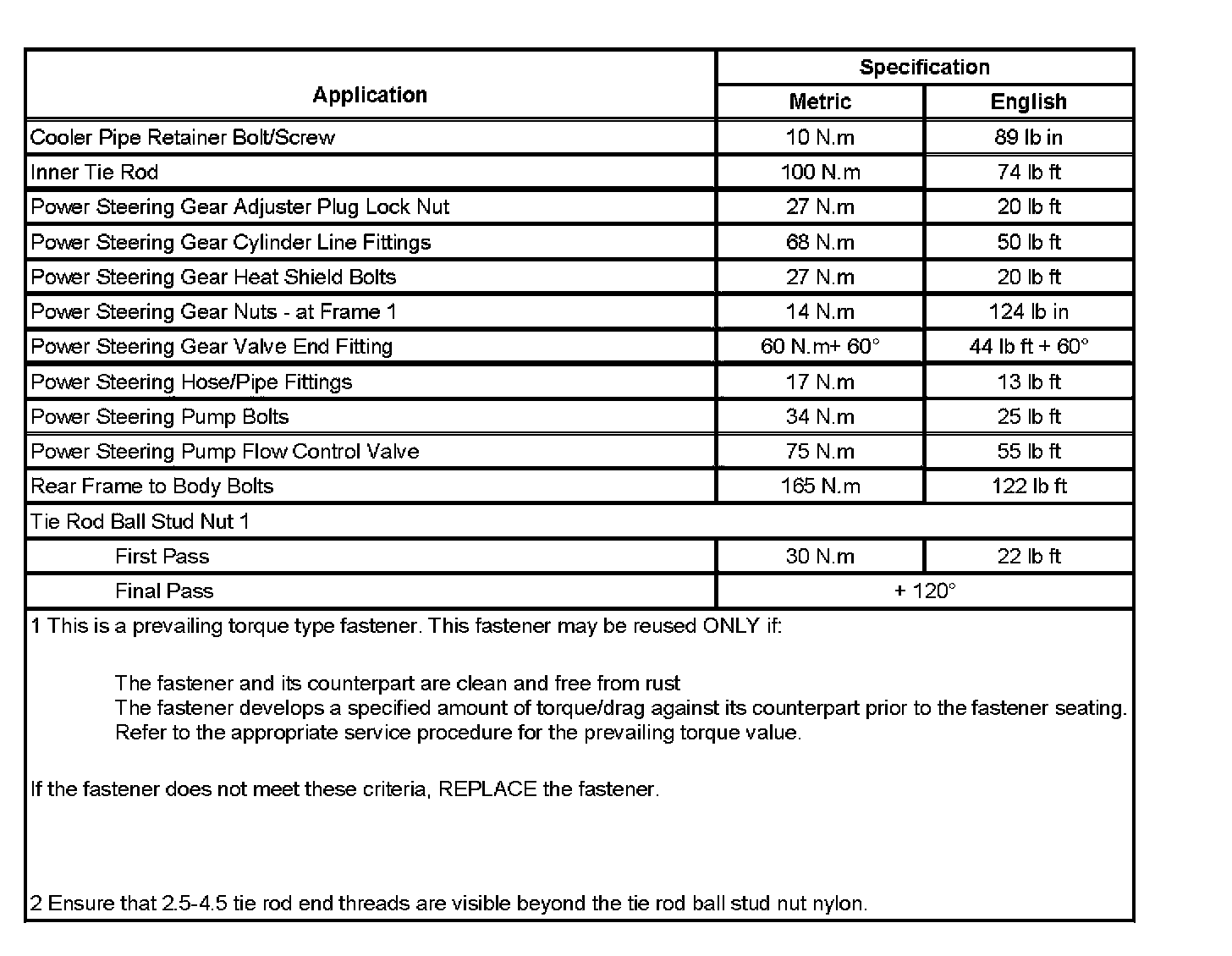 Fastener Tightening Specifications: