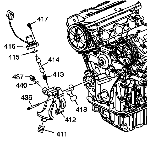 3. Remove the bolts (417), solenoid (416) and O-ring (415), if required.