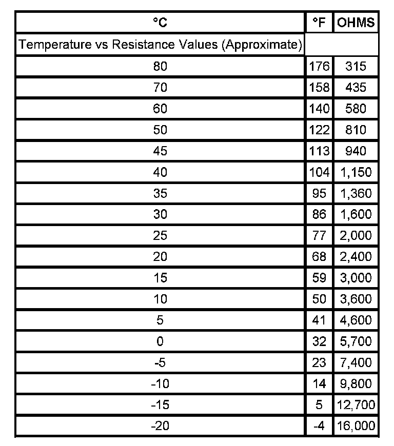 Temperature Versus Resistance - Intake Air Temperature Sensor