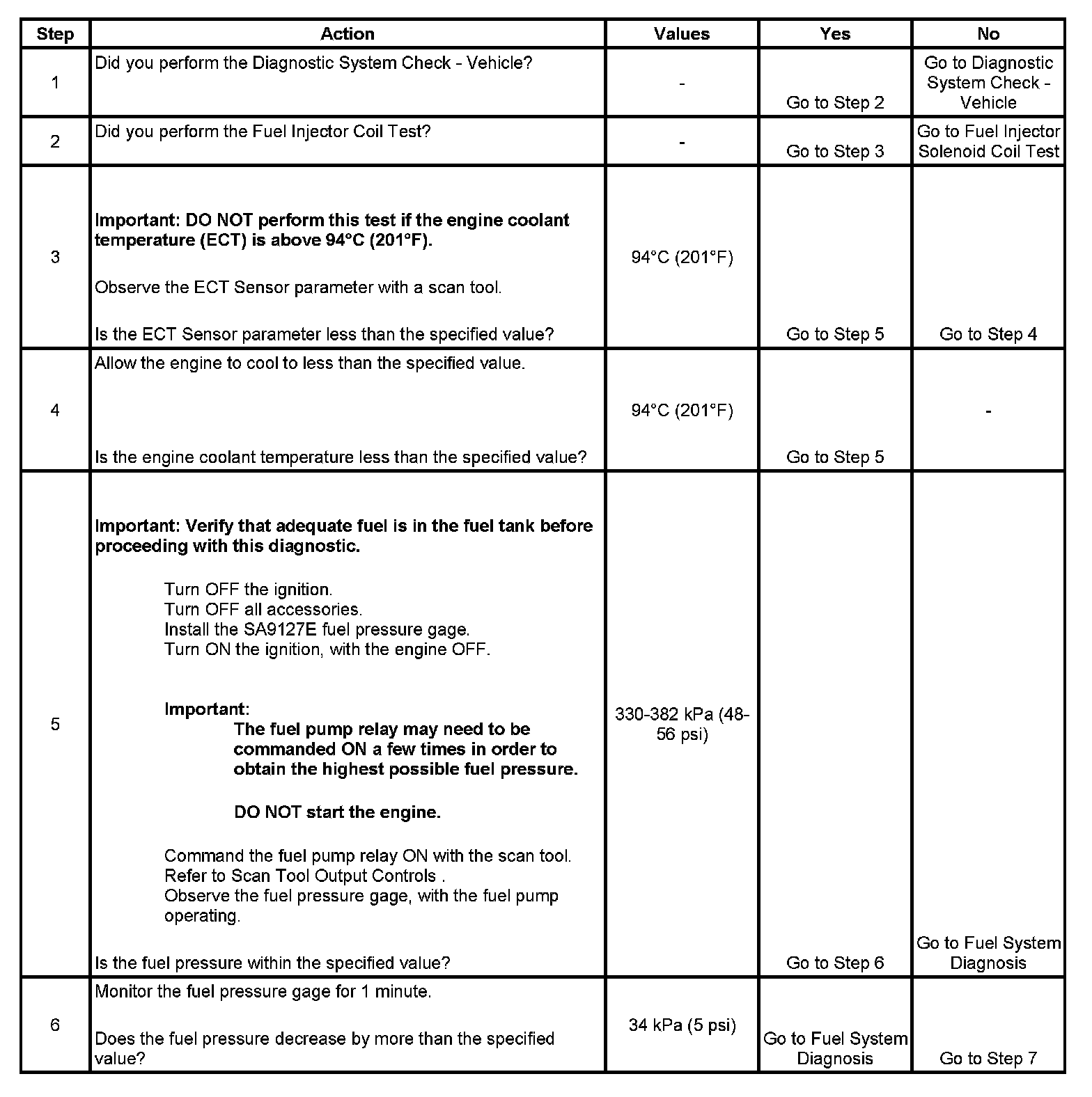 5. This step checks that the fuel pressure is within the specified operating range of this fuel system.