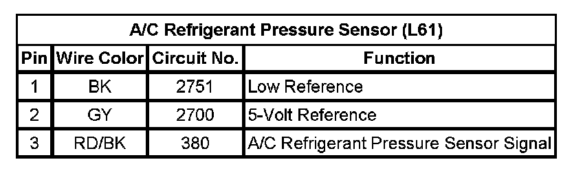 A/C Refrigerant Pressure Sensor (L61)