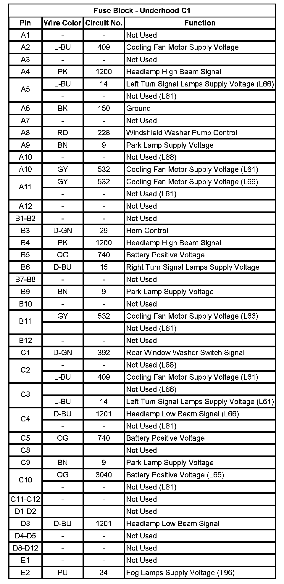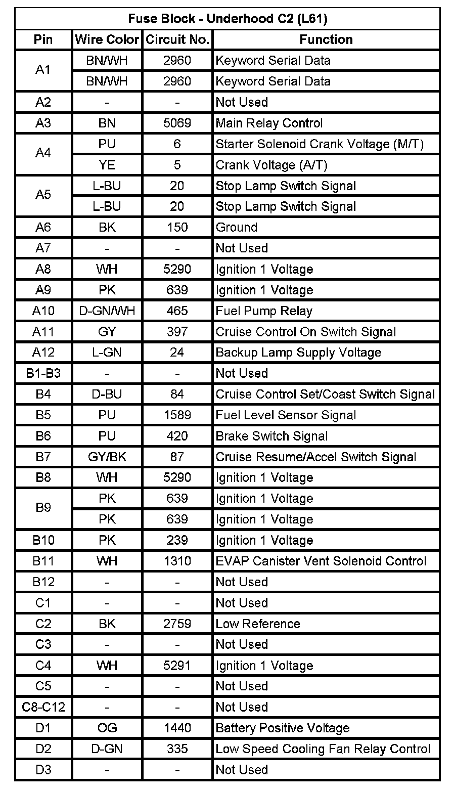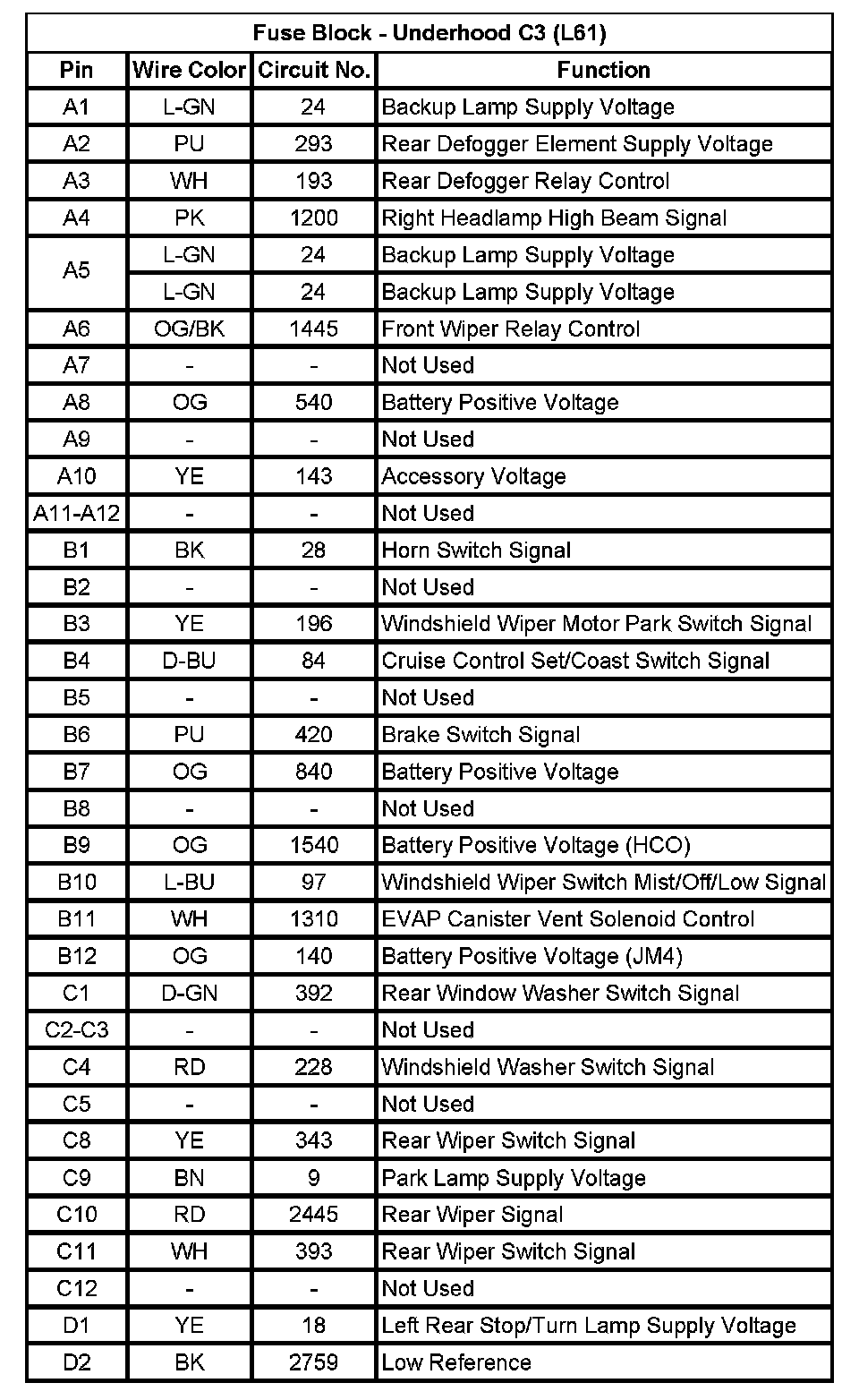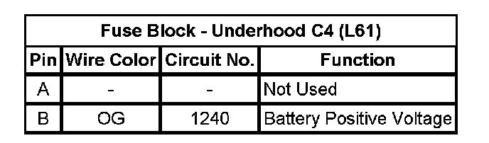 Fuse Block - Underhood C3 (L61) (Pin A1 To D2):