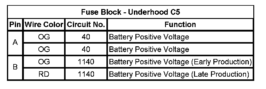 Fuse Block - Underhood C1 (Pin A1 To E2):