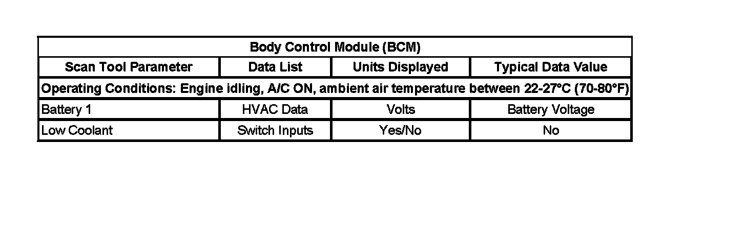 Use the Scan Tool Data Display Values and Definitions Information in order to assist in diagnosing the HVAC Control Module problems. Compare the vehicles actual scan tool data with the typical data display value table information. Use the data information in order to aid in understanding the nature of the problem when the vehicle does not match with the typical data display values.
