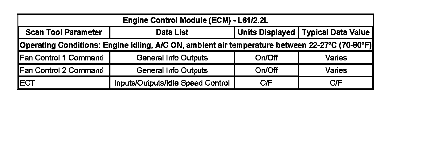 The scan tool data values were taken from a known good vehicle under the following conditions: