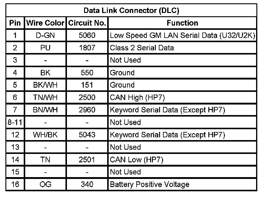 Data Link Connector: Diagrams