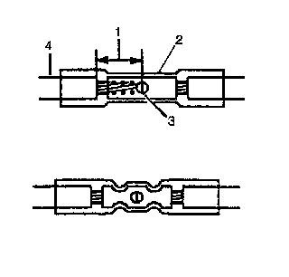 * Strip approximately 7.5 mm (5/16 in) of insulation from each wire to be spliced (1).