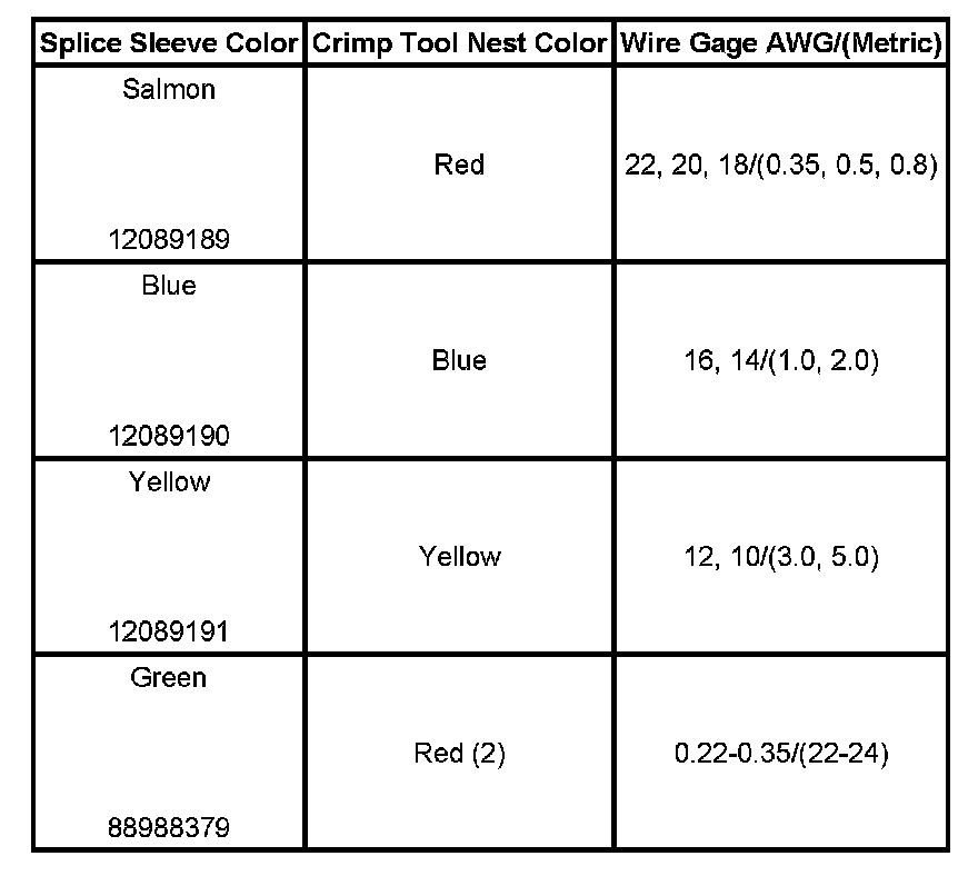5. Select the proper DuraSeal splice sleeve according to the wire size. Refer to the table provided.