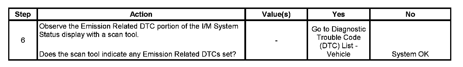 6. The I/M System Status only reports on whether or not a diagnostic has run, not what the outcome of the test was. If any emission related DTC sets after the tests are complete, the DTC will require diagnosis.