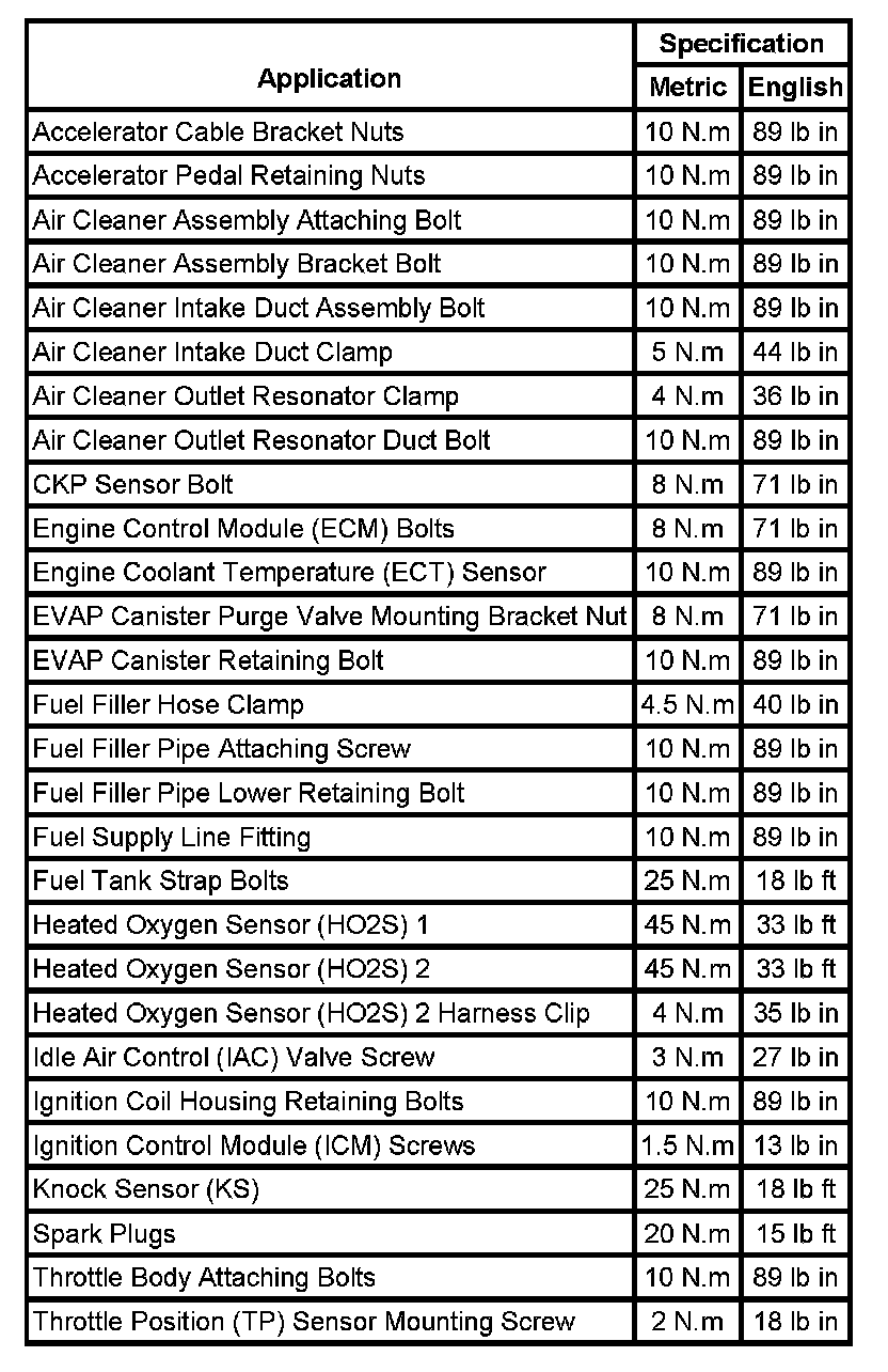Fastener Tightening Specifications