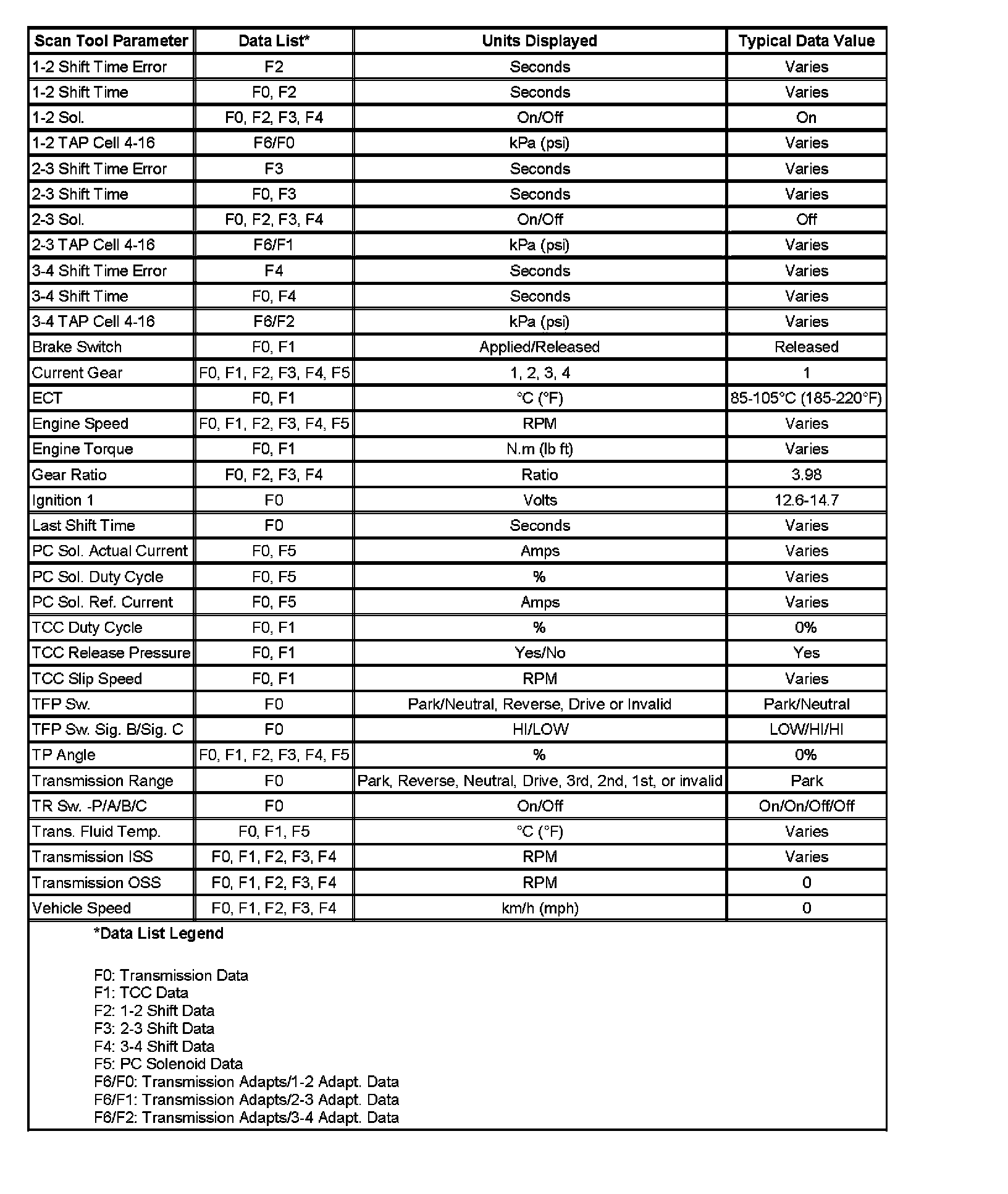 Only the parameters listed below are used in this manual for diagnosing. If a scan tool displays other parameters, the values are not recommended by General Motors for use in diagnosis.