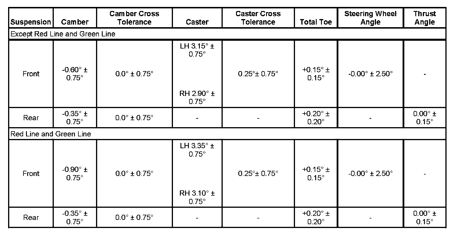 Wheel Alignment Specifications