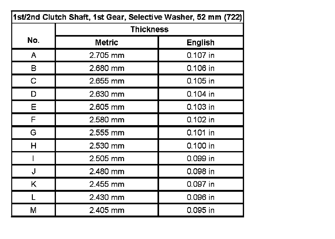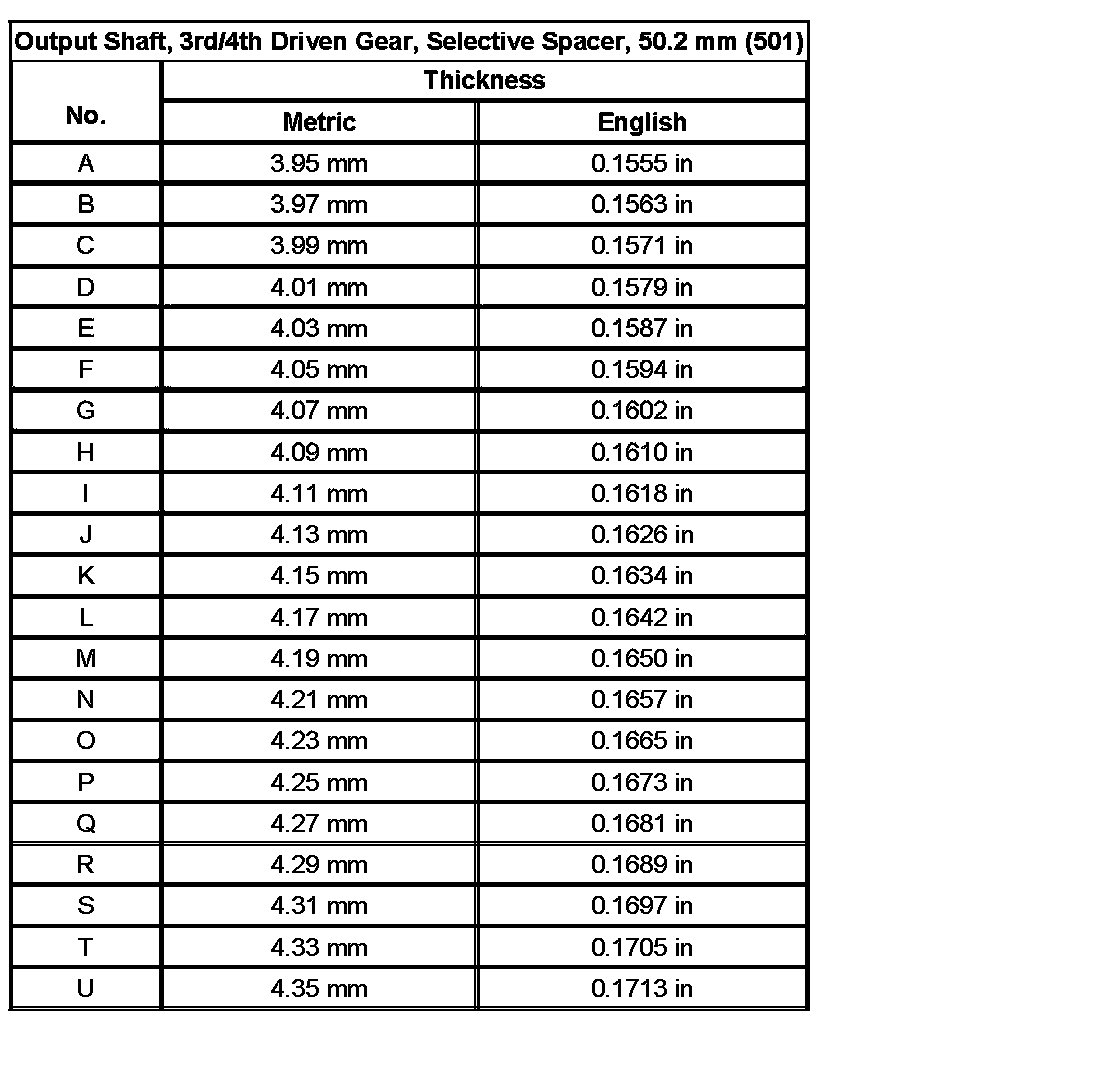 Shim Size Specifications (Part 5):