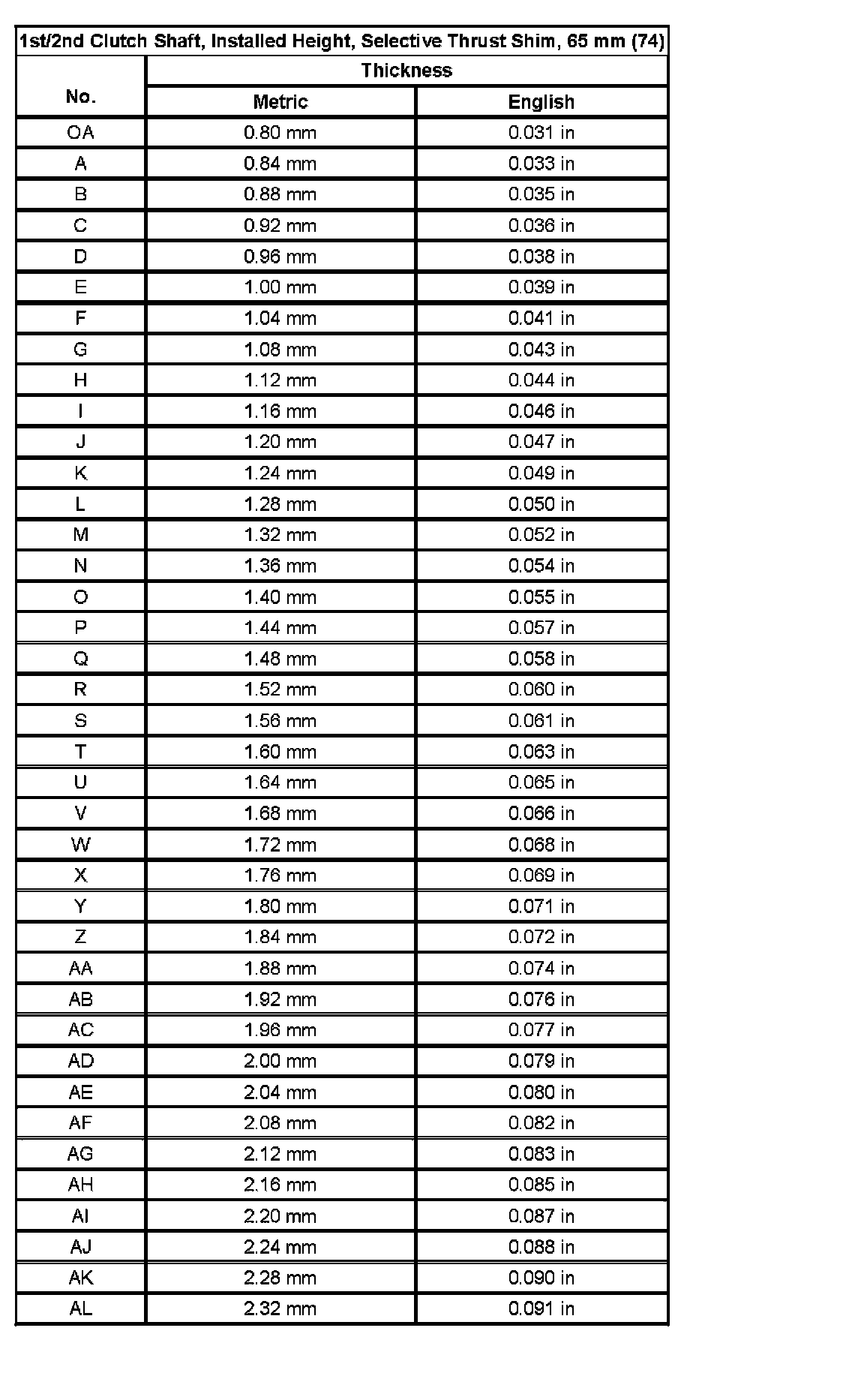Shim Size Specifications (Part 2):