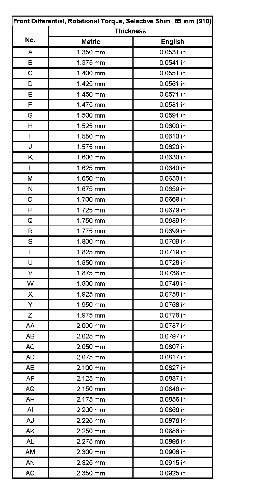 Shim Size SpecificationsShim Size Specifications (Part 1):