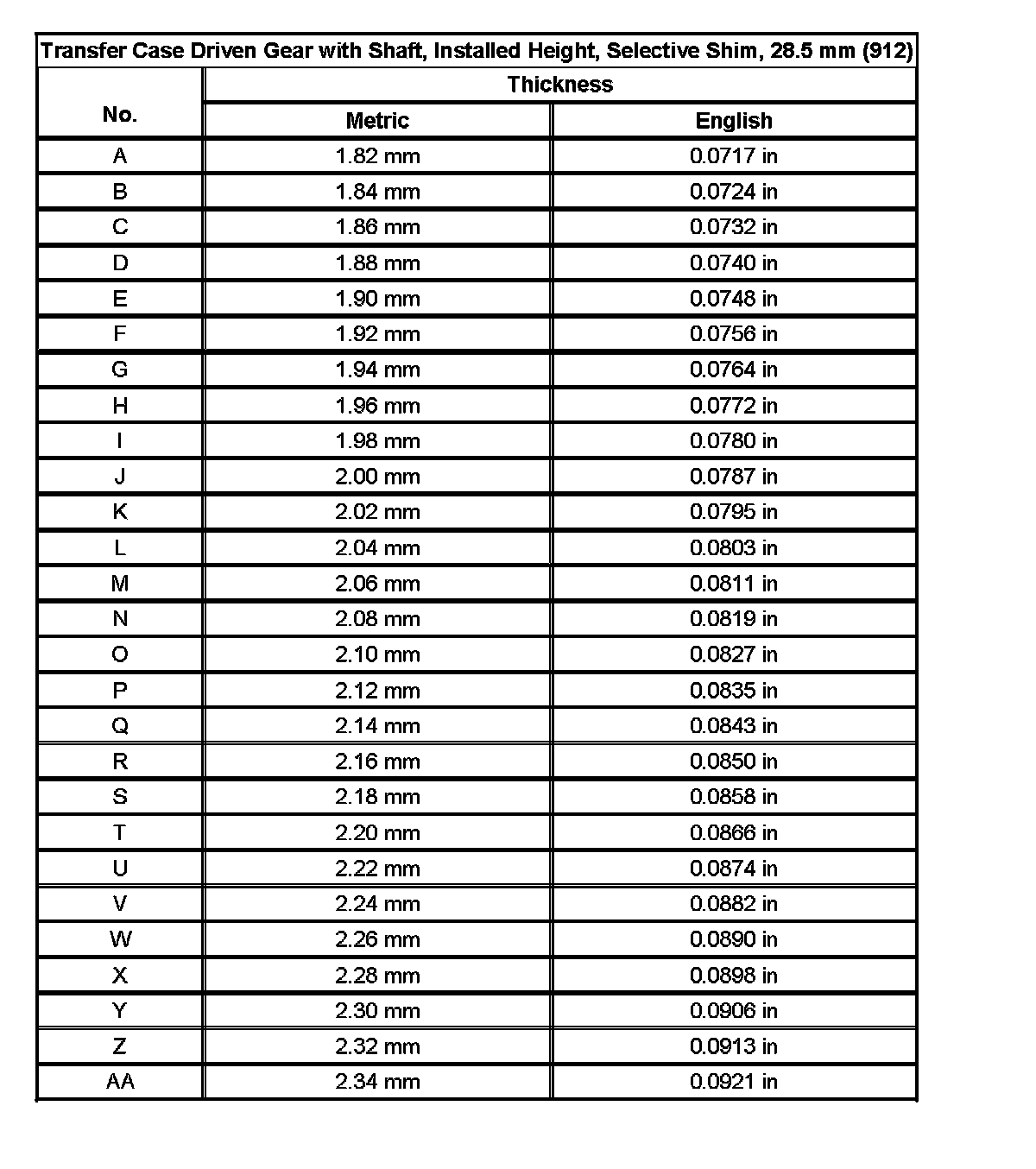 Shim Size Specifications (Part 12):