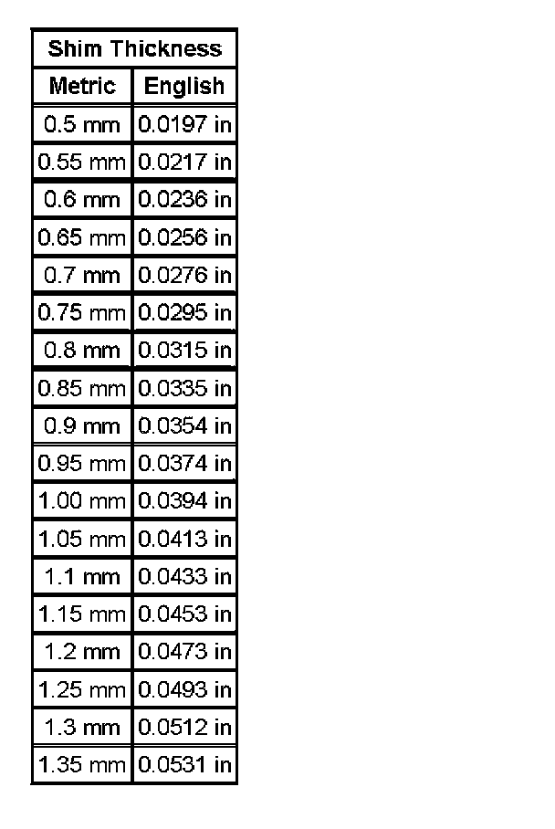 Shim Size Specifications