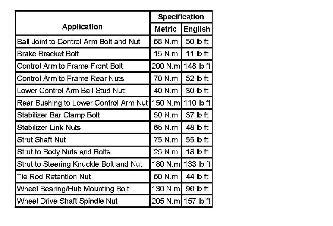 Fastener Tightening Specifications: