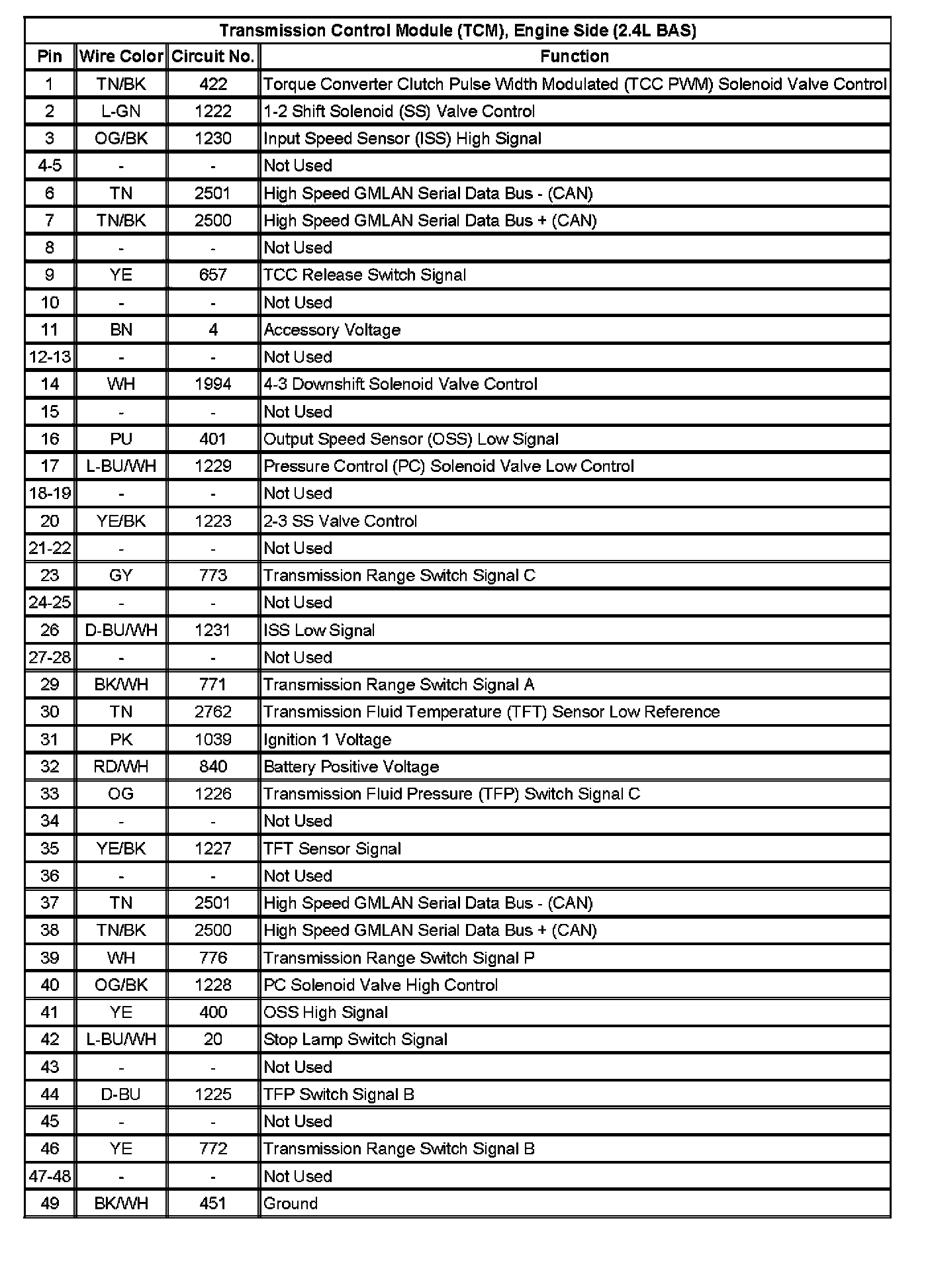 Transmission Control Module (TCM), Engine Side (2.4L BAS):