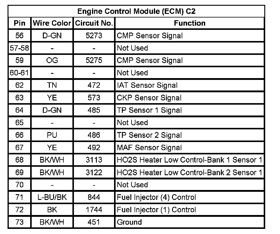 Engine Control Module (ECM) C2 (Pin 56 To 73):