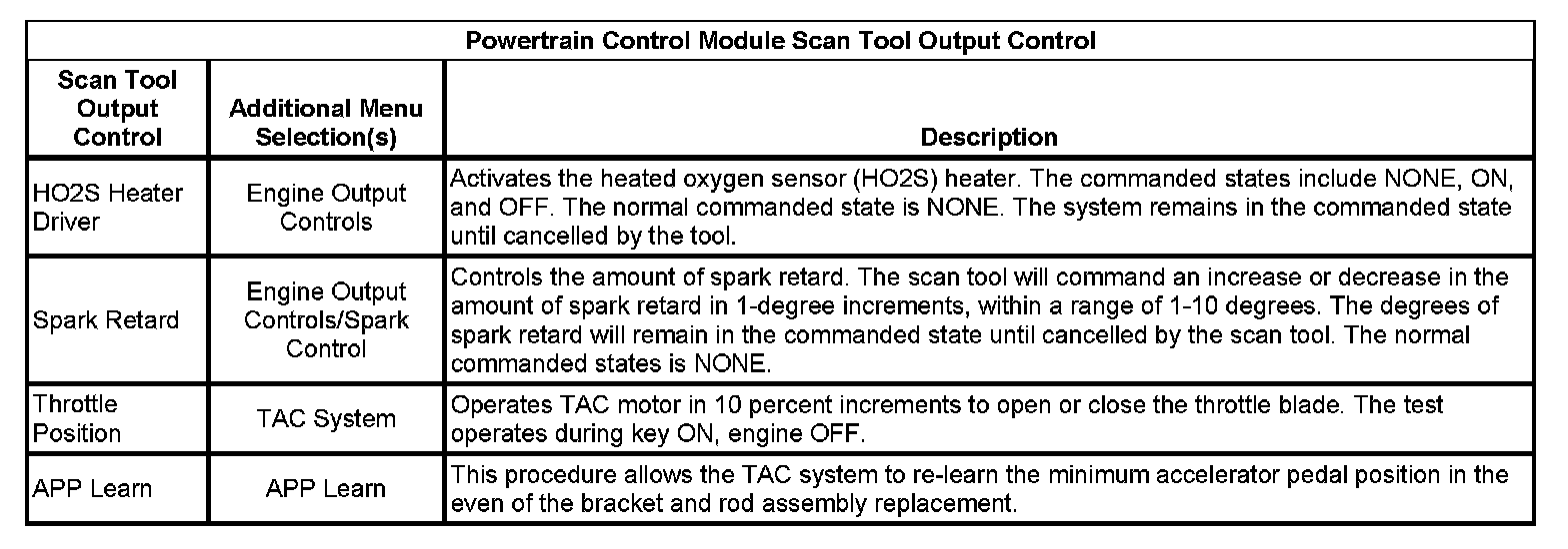 Scan Tool Output Controls