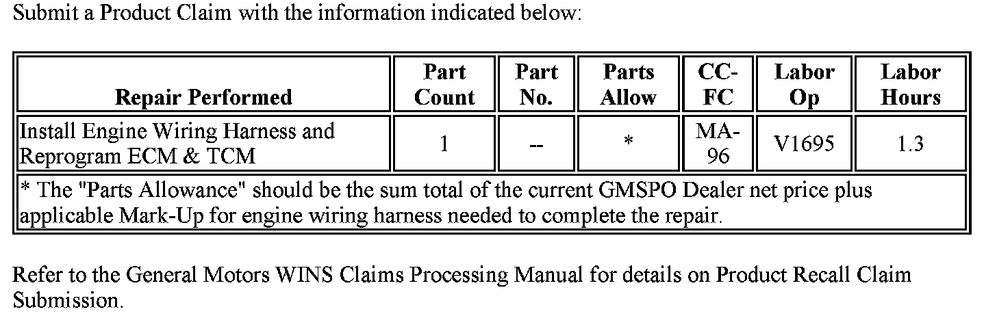 Refer to the General Motors WINS Claims Processing Manual for details on Product Recall Claim Submission.