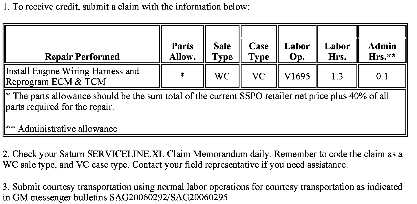 The General Motors Courtesy Transportation program is intended to minimize customer inconvenience when a vehicle requires a repair that is covered by the New Vehicle Limited Warranty. The availability of courtesy transportation to customers whose vehicles are within the warranty coverage period and involved in a product program is very important in maintaining customer satisfaction. Dealers are to ensure that these customers understand that shuttle service or some other form of courtesy transportation is available and will be provided at no charge. Saturn US retailers should refer to GM messenger bulletins SAG20060292/SAG20060295 for Courtesy Transportation guidelines. Saturn Canada retailers should refer to applicable Home Office letter on this subject.