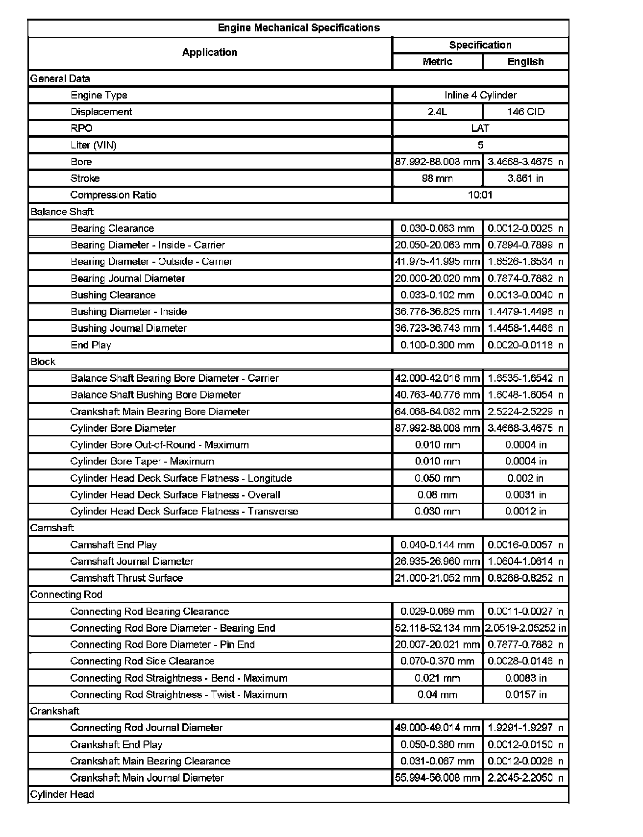 Engine Mechanical Specifications (Part 2):