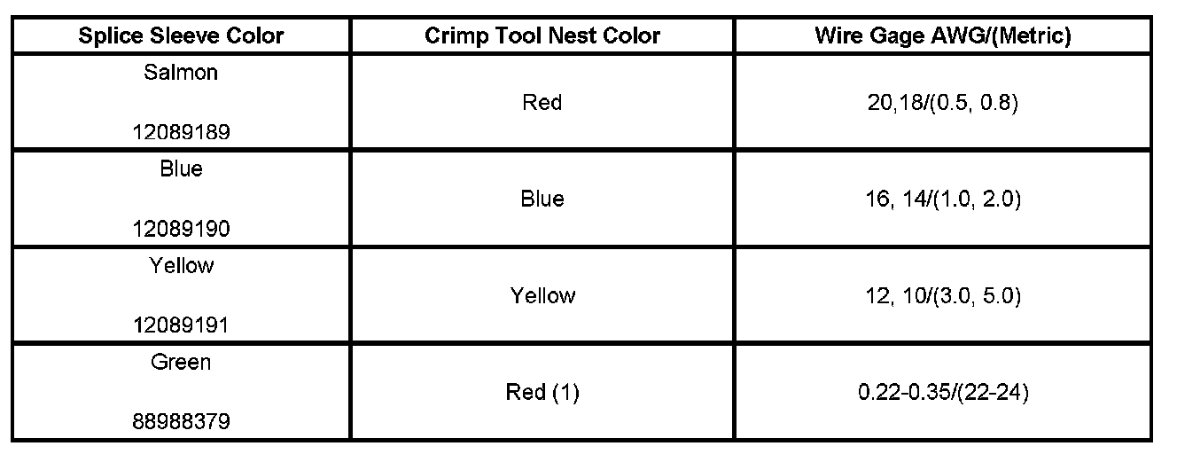 5. Select the proper duraseal splice sleeve (2) and the required crimp nest tool. Refer to the Crimp and Seal Splice Table.