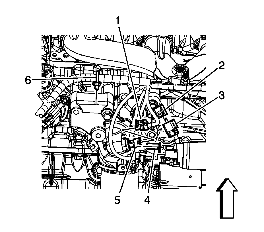 2. Disconnect the engine wiring harness electrical connector (3) from the knock sensor (2).