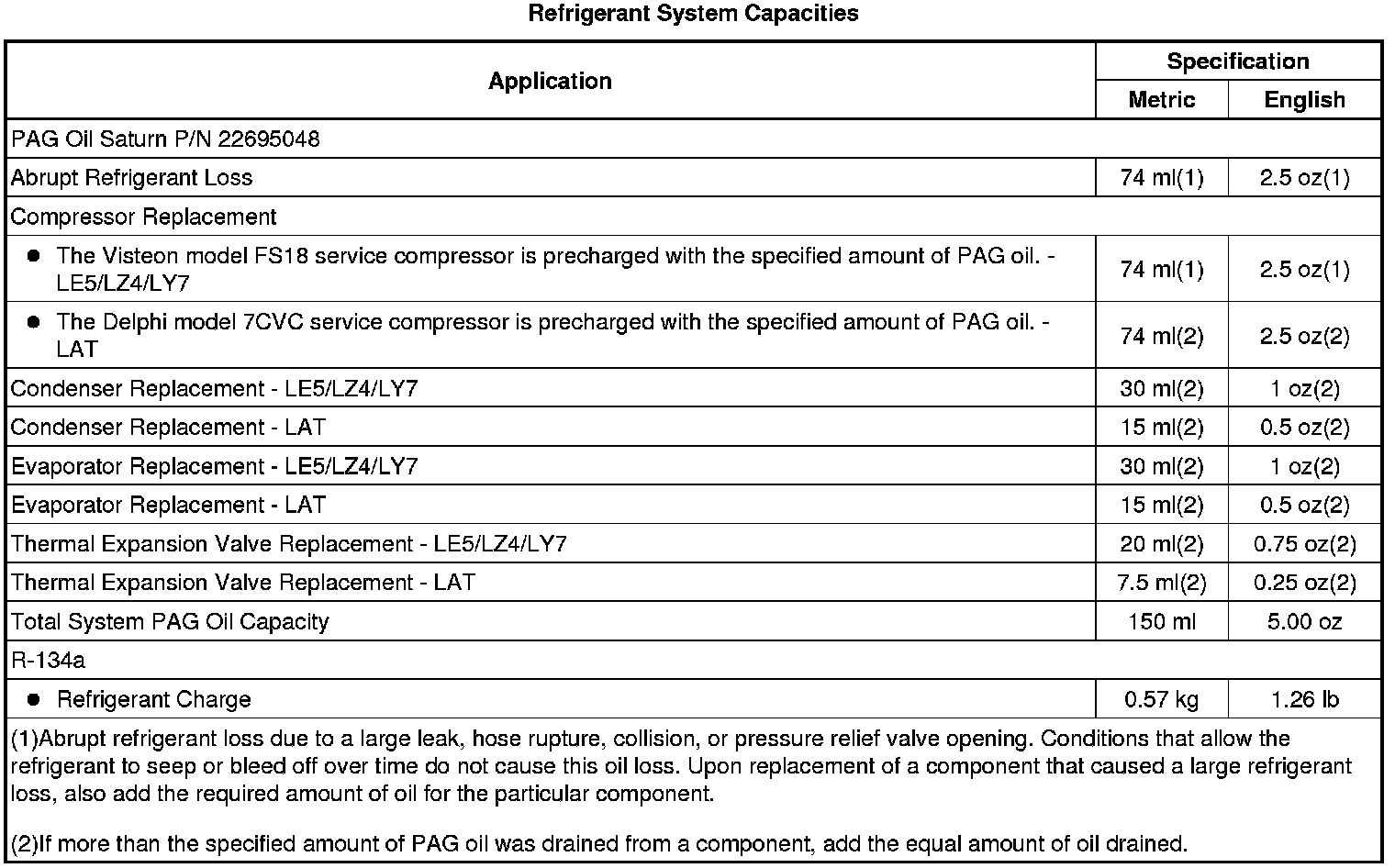Capacity Specifications