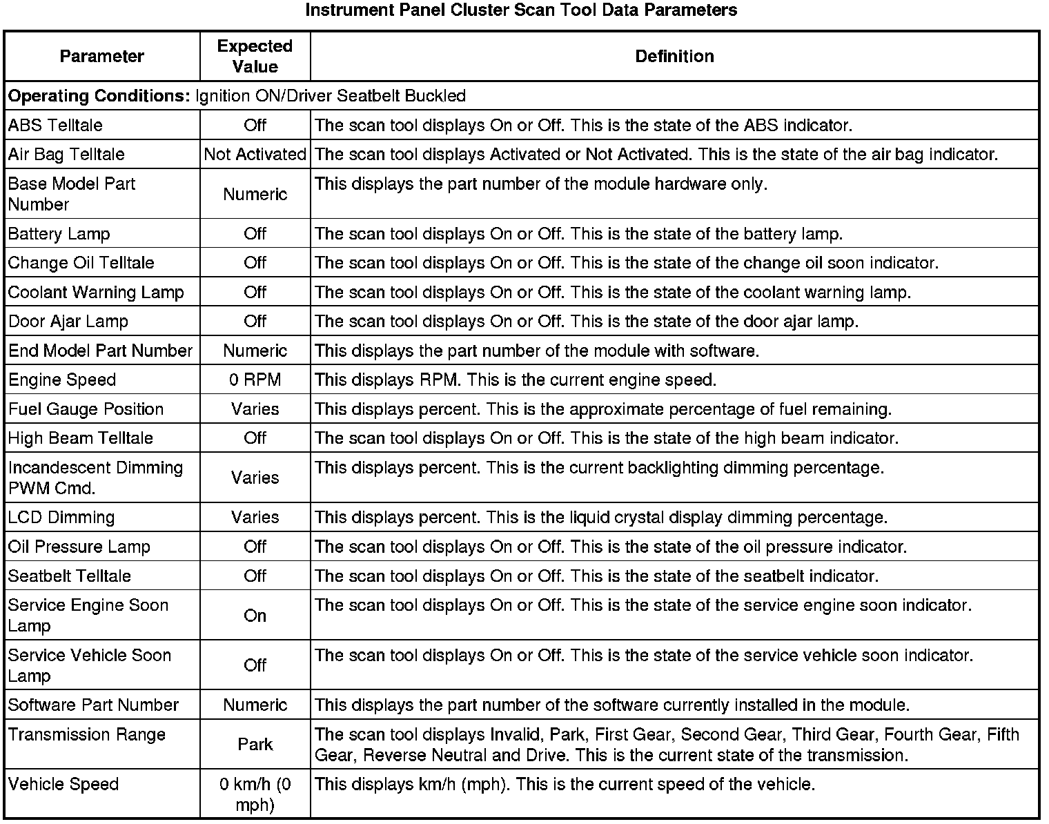 Instrument Cluster Scan Tool Information