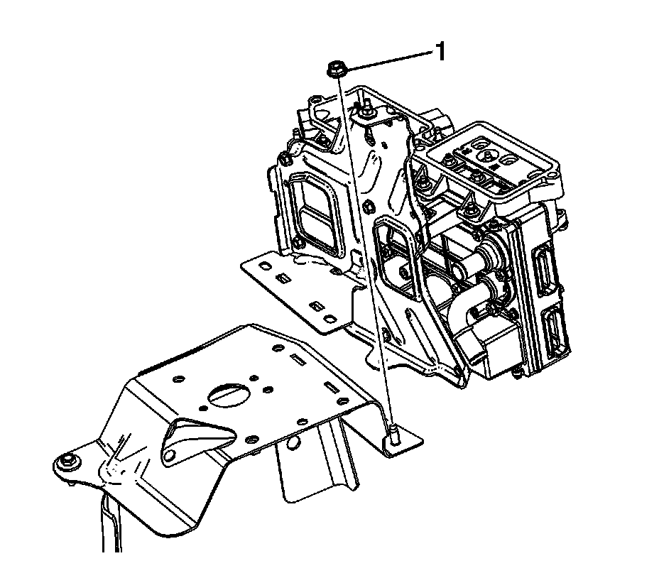 14. Remove the generator control module bracket nut (1).