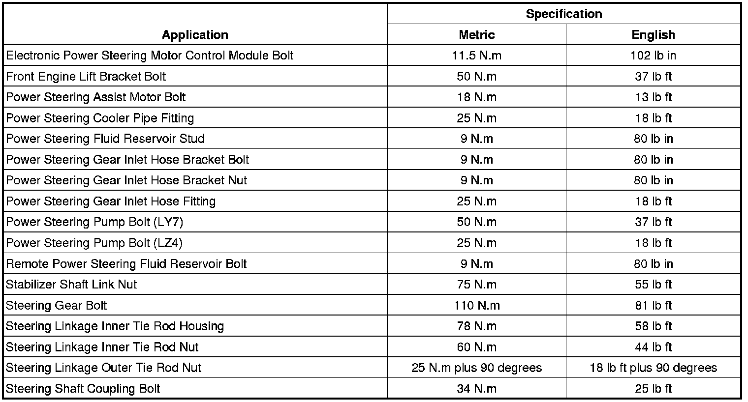 Fastener Tightening Specifications