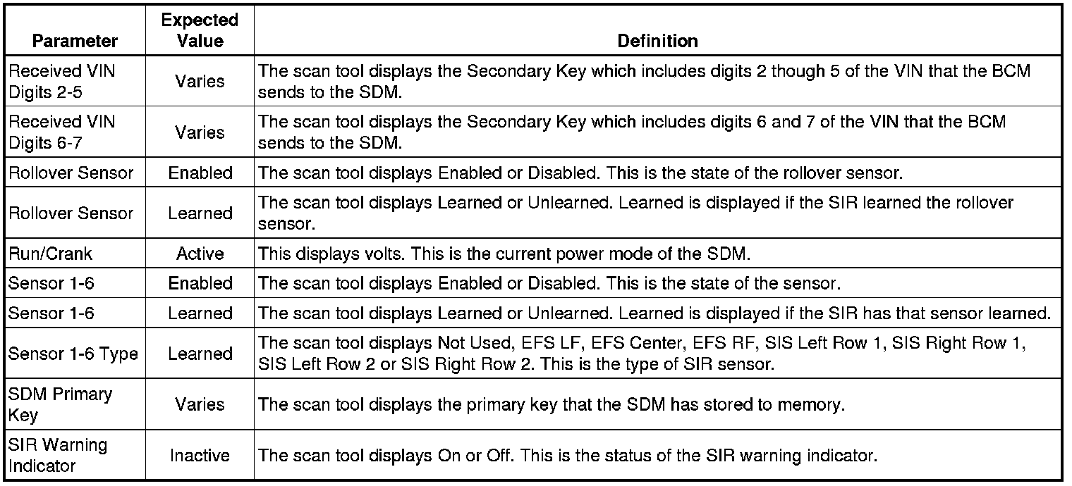 Inflatable Restraint Sensing and Diagnostic Module Scan Tool Information