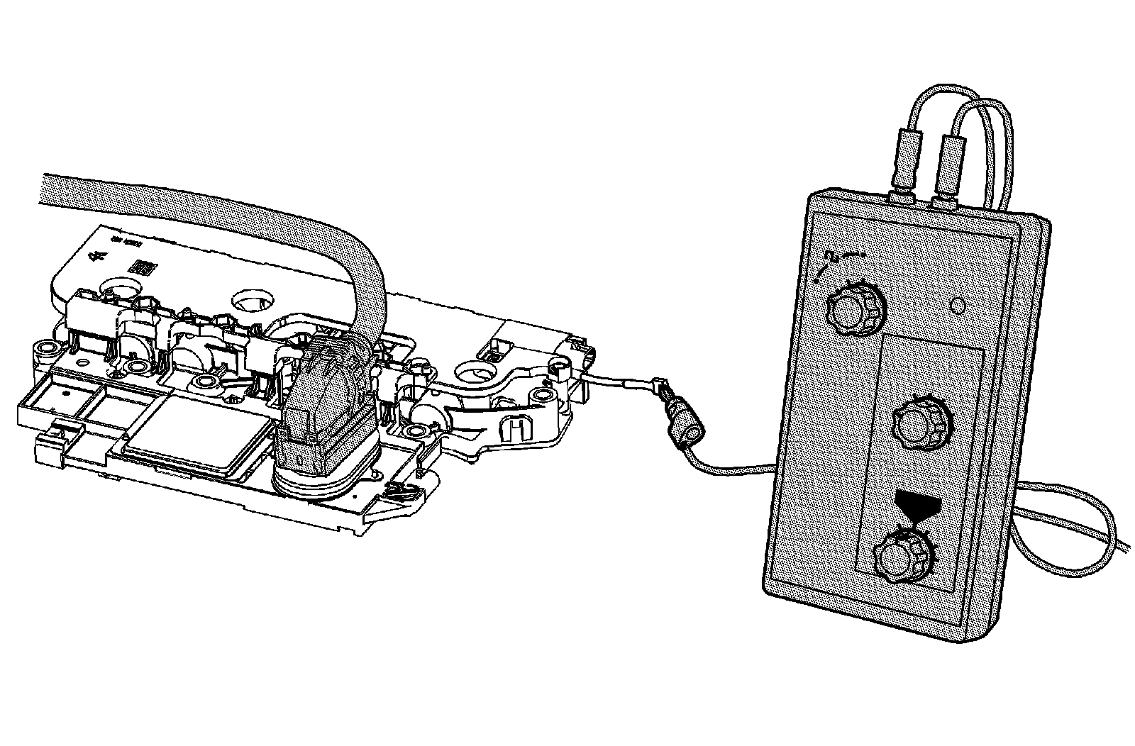 2. Using theJ 35616 , connect theJ 38522 to the affected ISS or OSS signal circuit on the control solenoid (w/body and TCM) valve assembly.