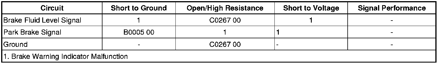 The body control module (BCM) monitors the status of the park brake. When the BCM receives a ground input from the park brake switch, a serial data message is sent to the instrument panel cluster (IPC) requesting illumination of the red brake warning indicator.