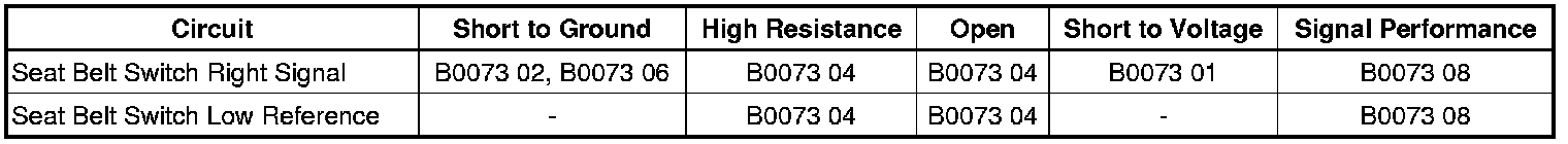 - Passenger Seat Belt Sensor Circuit Short To Ground or Open Circuit