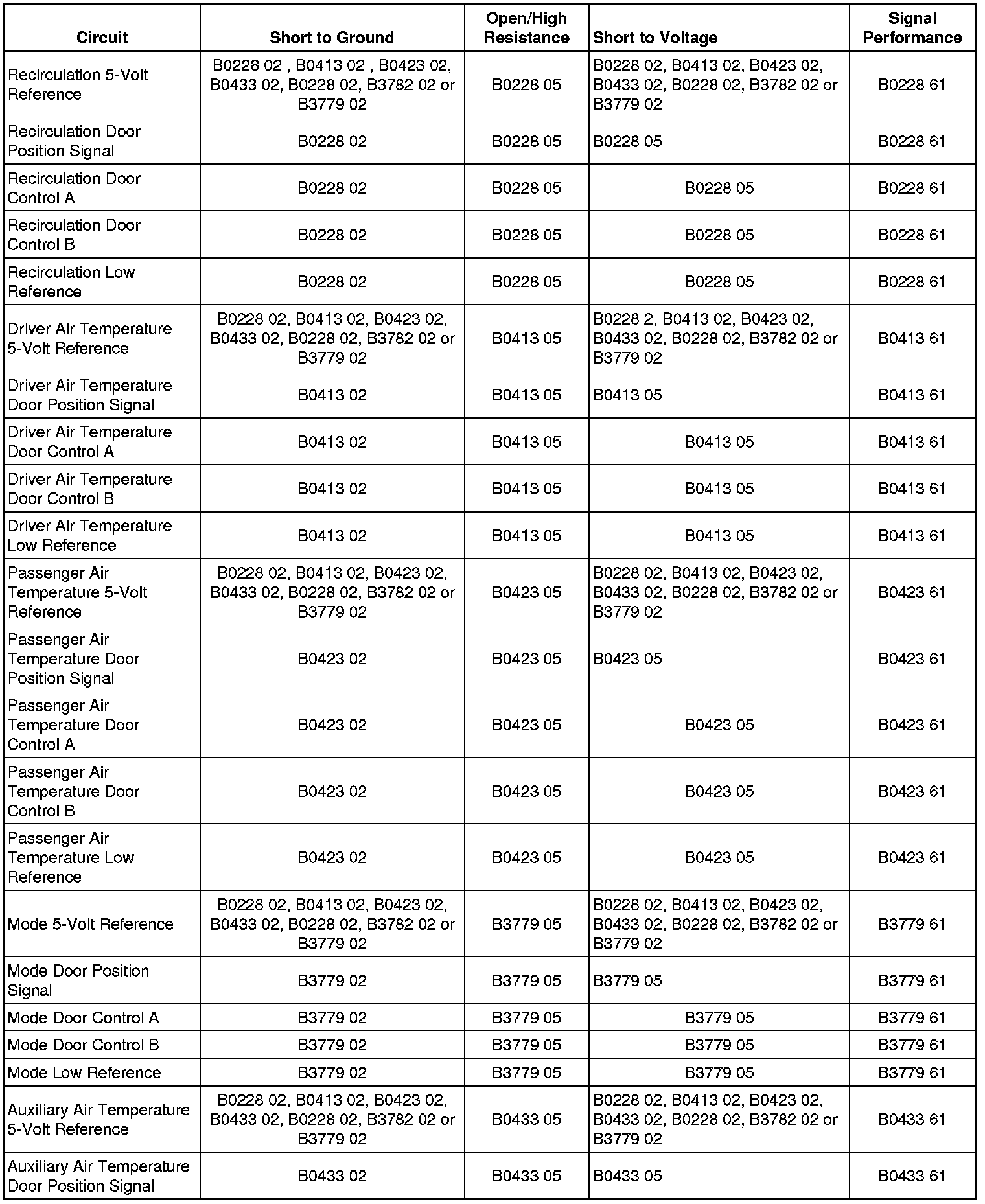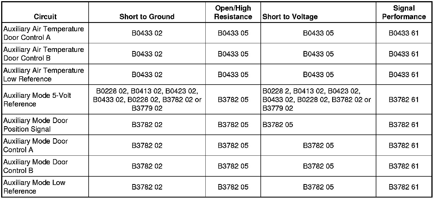 * DTC B0433 is for the auxiliary air temperature actuator
