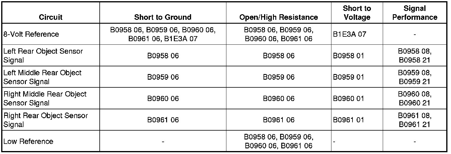 - Parking Aid Rear Sensor 1 Circuit Signal Invalid-Left Corner