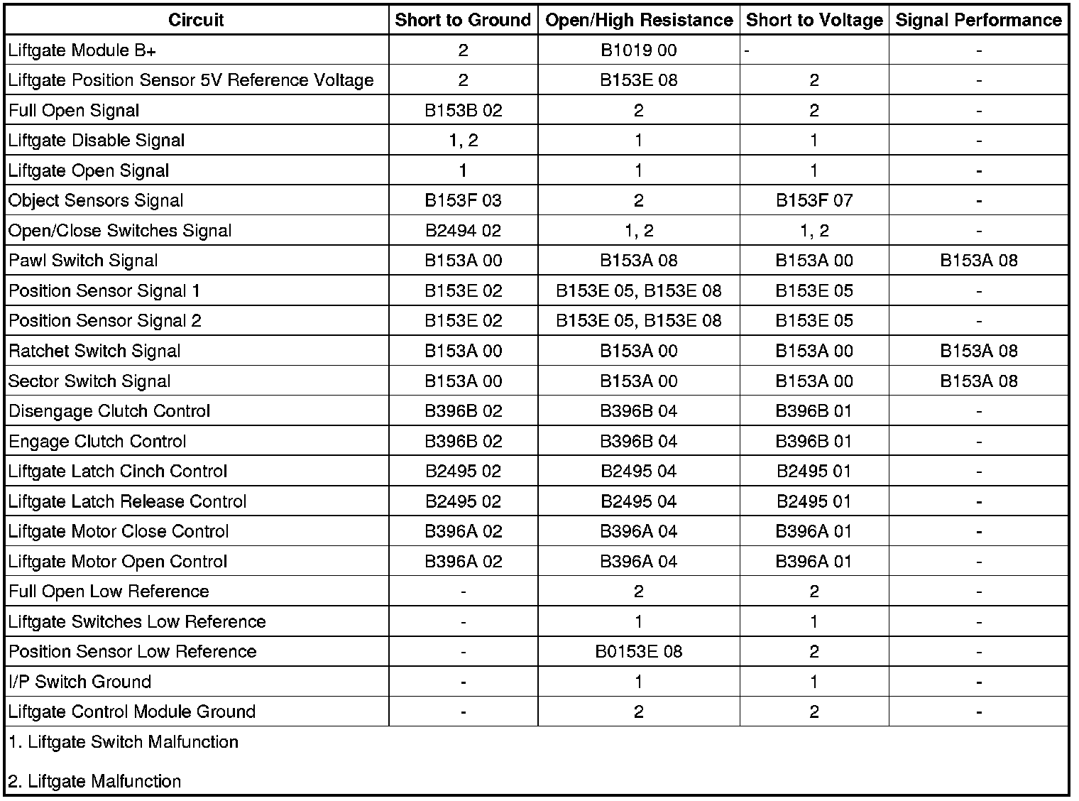 - Liftgate Latch Switch Signal Circuit Signal Invalid