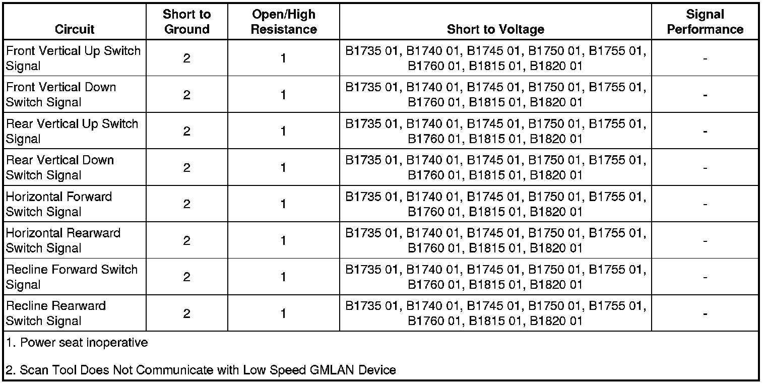 - Seat Assembly Rearward Switch Circuit Short to Battery